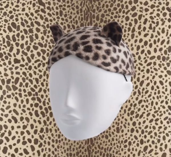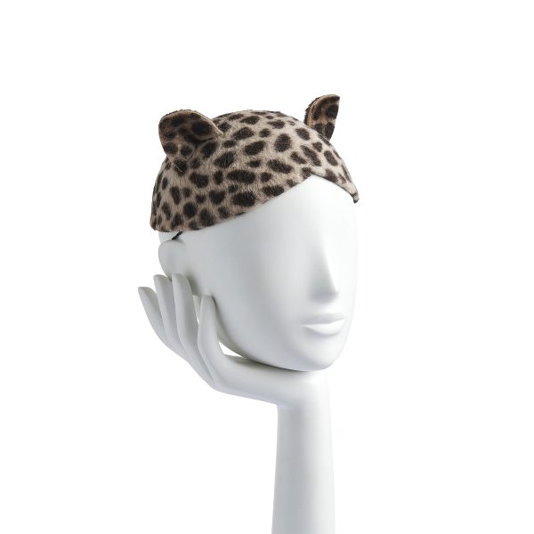 Hand blocked calot cat ear hat in print fur felt. Available other prints.