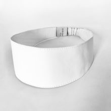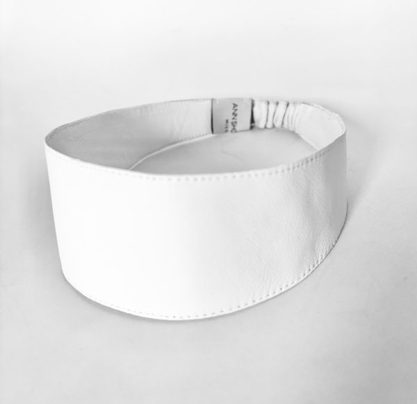 A handmade soft leather bandeau with elastic for one size fits all. Available white, black and other colours on request.
