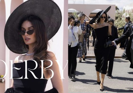Nic Trunio wearing Ann Shoebridge styled by Marina Didovich for Victoria Racing Club Derby Day, November 2022